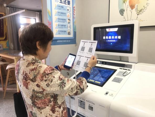 在桃浦东部片区和真如片区,“一网通办”自助服务终端机可办理各种业务。居民们凭身份证就可一站式打印纸质离线随申码、补办和更换就医记录册等等,覆盖医保、人社、公安、民政等百余项高频政务服务事项。如遇到操作上的困难,工作人员会及时提供帮助,让大家感受到轻松、便捷、体贴、高效的智慧化服务。
