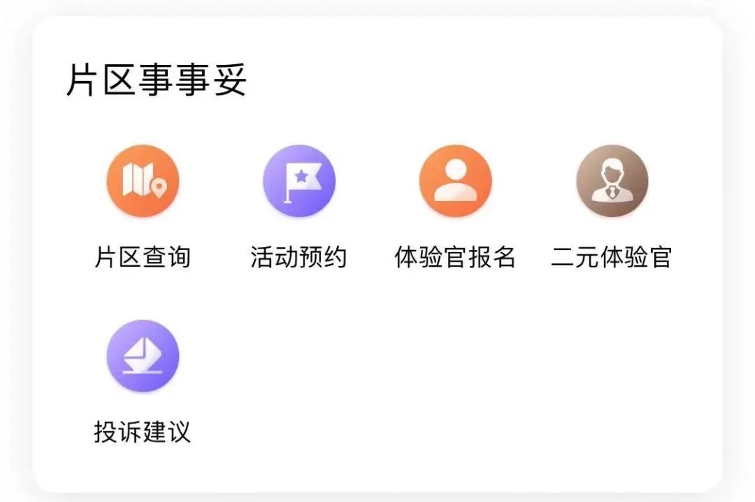 近日,随申办APP“邻聚里片区服务专区”正式上线,功能全面覆盖普陀10个街道镇32个片区,居民动动手指,就能实现片区动态“一键查询”、活动报名“一键预约”、主题活动“一键体验”、反馈评星“一键评价”等功能,此外,不定期还会有体验活动的报名,感兴趣的居民可以点击“体验官报名”参与体验。有投诉或者建议的居民,还可以点击“投诉建议”进行反馈。作为普陀区加深“一网通办”线下与线上融合的产品,“随申办·邻聚里片区服务专区”真正实现了在线上激活、串联起各类社区优质服务资源。