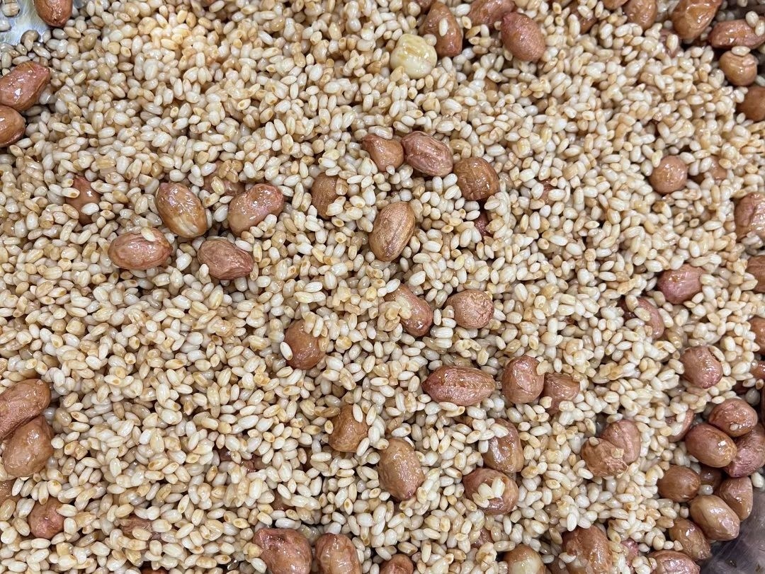 糯米中加入适量酱油、食盐及花生搅拌均匀;切好的小块五花肉提前一晚倒入酱油、盐腌制。