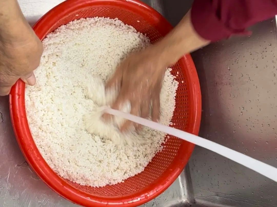 糯米洗净后浸泡一晚,沥干水分