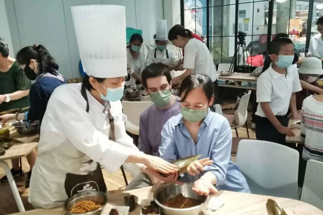 6月21日,乔家栅体验中心文旅融合公共服务点位举行了首场公教活动,由点心师手把手教市民游客包粽子,围绕中国节日和文化传统,以全工序深度体验的形式教授传统糕点的制作,让乔家栅糕点制作的非遗技艺走进现代生活。