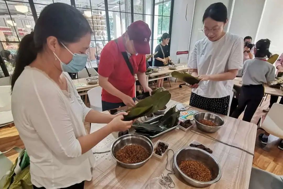 看似简单的手艺,要做到外形标致、内陷紧实可不简单。课堂上,无论年龄大小,老、中、青、幼的市民朋友们都全身心投入包粽子学习。在欢声笑语中,传承着这门创造美味的手艺。
