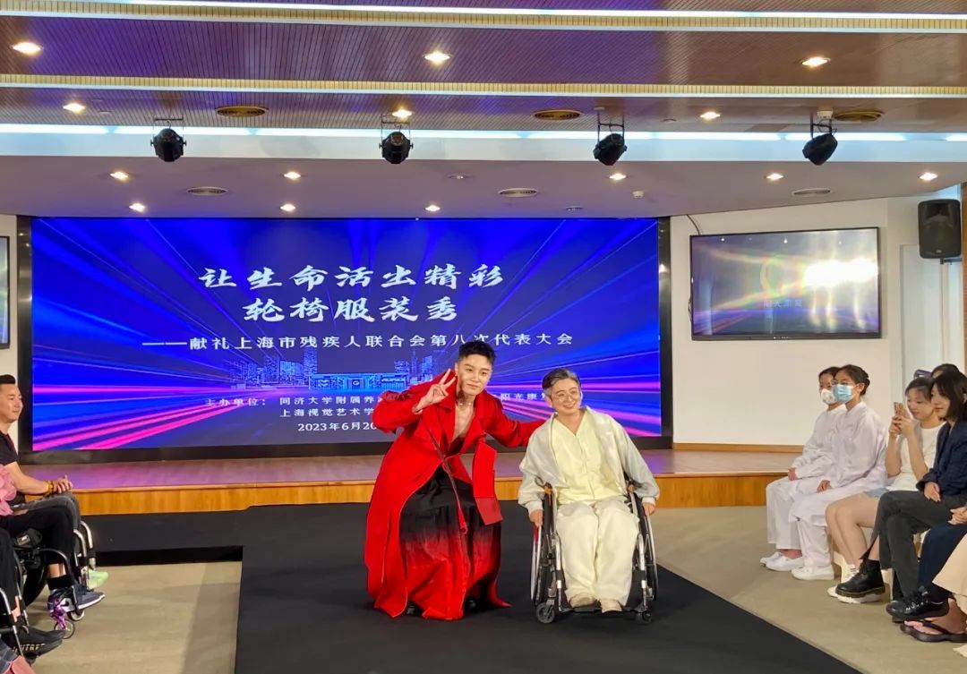 松江学子设计专属服饰,让残障人士展现他们的美。6月20日,同济大学附属养志康复医院(上海市阳光康复中心)举办“让生命活出精彩”轮椅服装秀活动,上海阳光康复中心“希望之家”艺术团的伤友模特和上海视觉艺术学院学生模特通过T台秀展示靓丽服装。