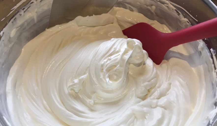 6、淡奶油里加入少许白砂糖后打发至硬挺状态。