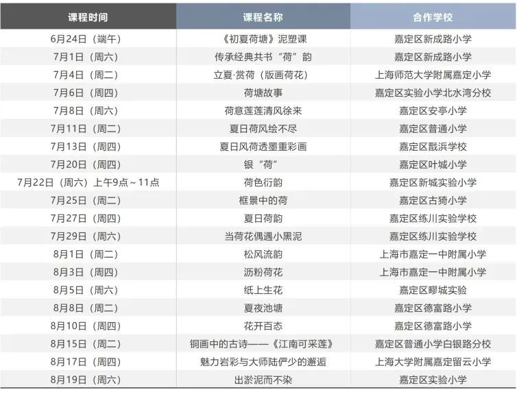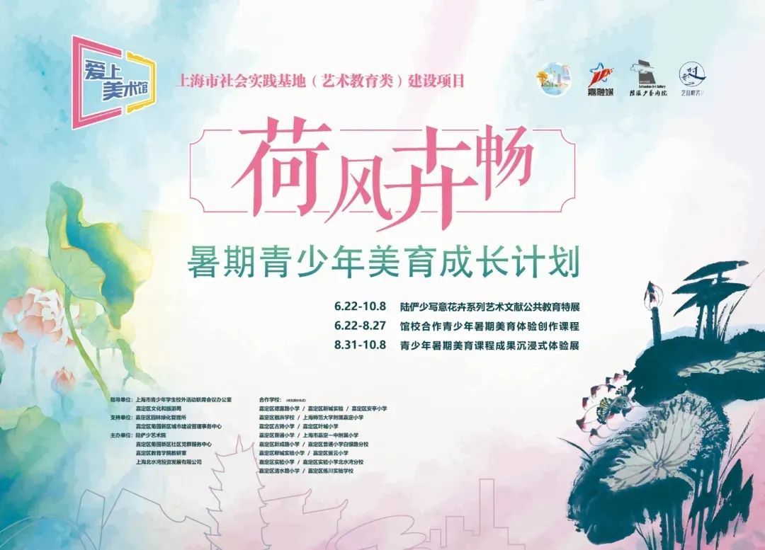 “馆校合作青少年暑期美育体验创作课程”邀请嘉定区17所学校的21位美术教师加入,从6下旬开始以“荷”为媒,以“花”为意,开展临摹、写生、拓展、衍生等多形式的青少年美育课程项目。