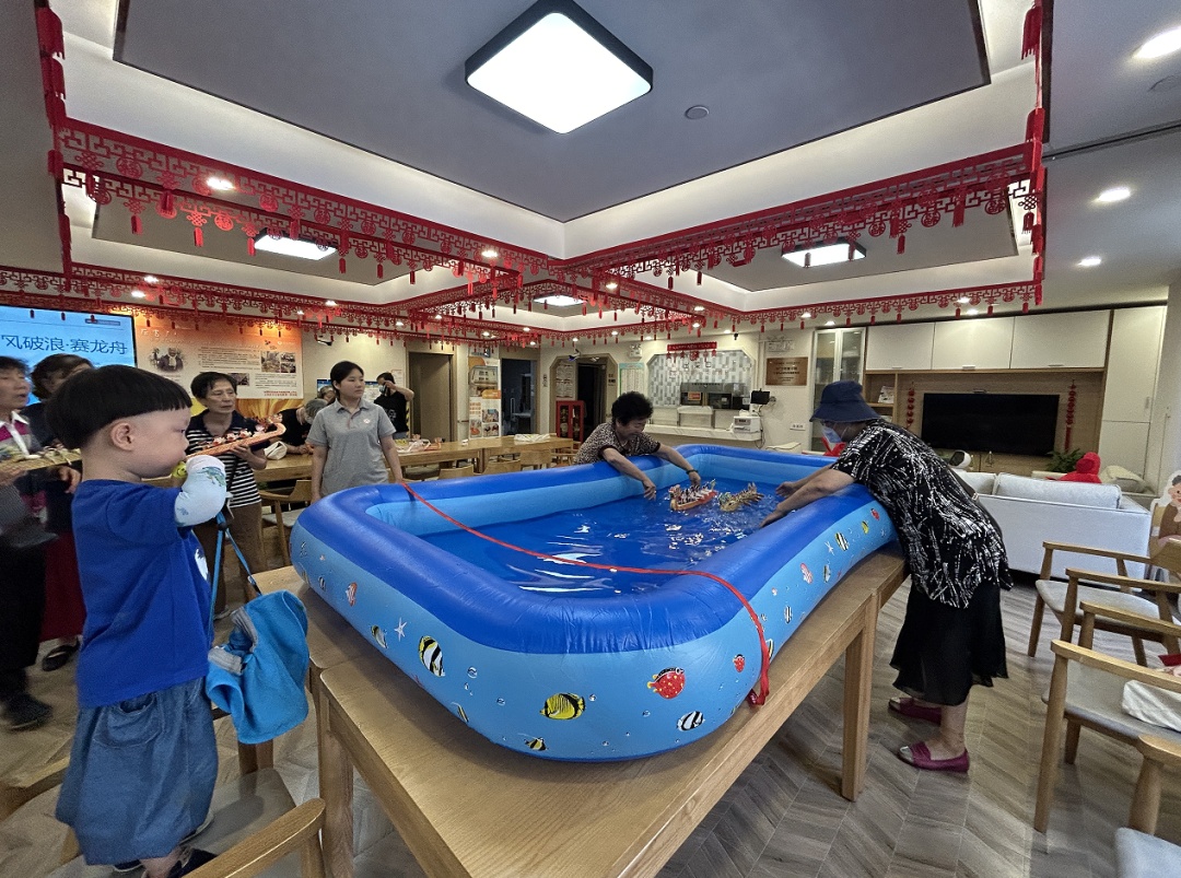 包粽子、佩香囊、悬艾草、赛龙舟等活动在市民心中是端午节必不可少的传统特色活动。在万宏养老集团旗下的仙霞社区综合为老服务二中心内,正上演着一场“龙舟竞赛”。