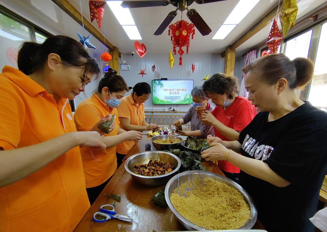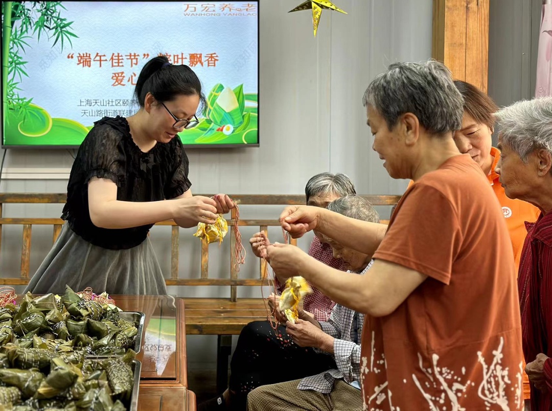 每年的端午节,一定少不了吃粽子。这不,在万宏养老集团旗下的天山社区颐养长者照护之家,糯米、棕叶、馅料都摆上了桌,入住老人、机构工作人员以及社区志愿者们一起欢乐地包起了粽子。