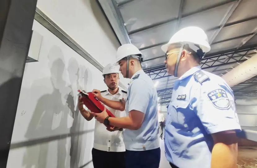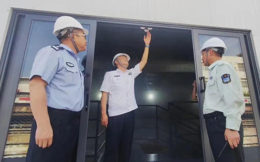 6月22日端午节一早,平凉路派出所所长刘昕炜带领滨江警务站民警赵宏胜,会同区消防救援支队防火监督员杨维雯再次走进施工现场。假期前夕,古船周身,一个模仿水底环境、恒温恒湿的临时保护棚刚刚建成。为确保古船施工现场能平稳应对即将到来的汛期、高温等天气状况,检查“小分队”要对全新“升级”的安防、消防设备提前开展实地检查和指导。