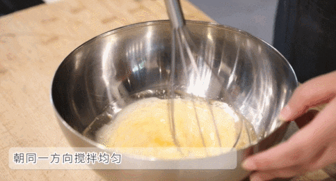 2. 将碗中的混合物朝同一方向搅拌均匀。