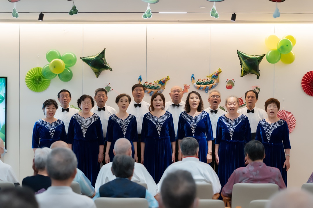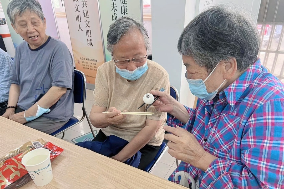 华东花苑第二居委、长桥新村一居委、长桥三村一居委等,分别举办了不同形式的联欢会。华东花苑第二居委以“老人合唱”为主,吟唱《洪湖水浪打浪》、对唱经典《夕阳红》等;长桥新村一居委、长桥三村一居委则以“老少结合”形式,带来《让我们荡起双桨》《外婆的澎湖湾》等唱歌跳舞节目。“水浪、双桨、澎湖湾”这些元素和端午“赛龙舟”相吻合,每个小细节都体现着强烈的端午氛围,也呼吁大家关爱身边的老人。