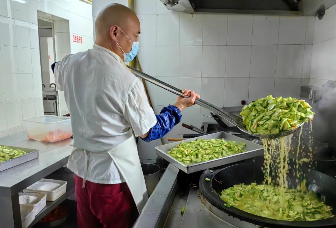 食堂对卫生安全非常重视,“餐具都要按照规定步骤用热水冲洗,每天消毒两次,盛装午饭前要消毒,晚上统一收回后还要消毒”。工作人员说,“前期菜品也都经过了严格把关,尽量用少油少盐的方式烹饪”。