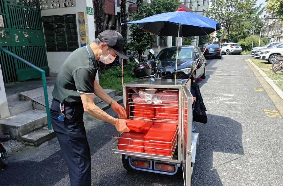“我儿子儿媳妇快70岁了,每顿送饭挺折腾,不如订餐省心。”周爷爷说,吃了十来天订餐后发现,餐食种类多,价格也不贵。为让老年人吃上热乎的饭菜,送餐车采取完全封闭式的设计,每车装72盒左右。每天一般11点半之前送完。如果有的老年人不吃A套餐里的芹菜,要换成B套餐的杭白菜,配送前工作人员会提前标注好忌口,还会二次确认。