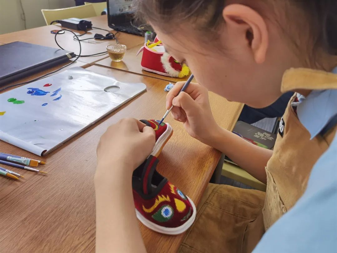 俗话说“端午到,虎头俏”。虎头鞋是中国传统手工艺品之一,是一种童鞋,因鞋头呈虎头模样,故称虎头鞋,虎头鞋制作技艺已被列入中国非物质文化遗产,制作虎头鞋是端午佳节的民间传统项目。青浦区尚美中学在课后服务时间开设了“虎头鞋”系列课程,不仅锻炼孩子的动手能力,更让中华传统文化在学校里发扬光大。