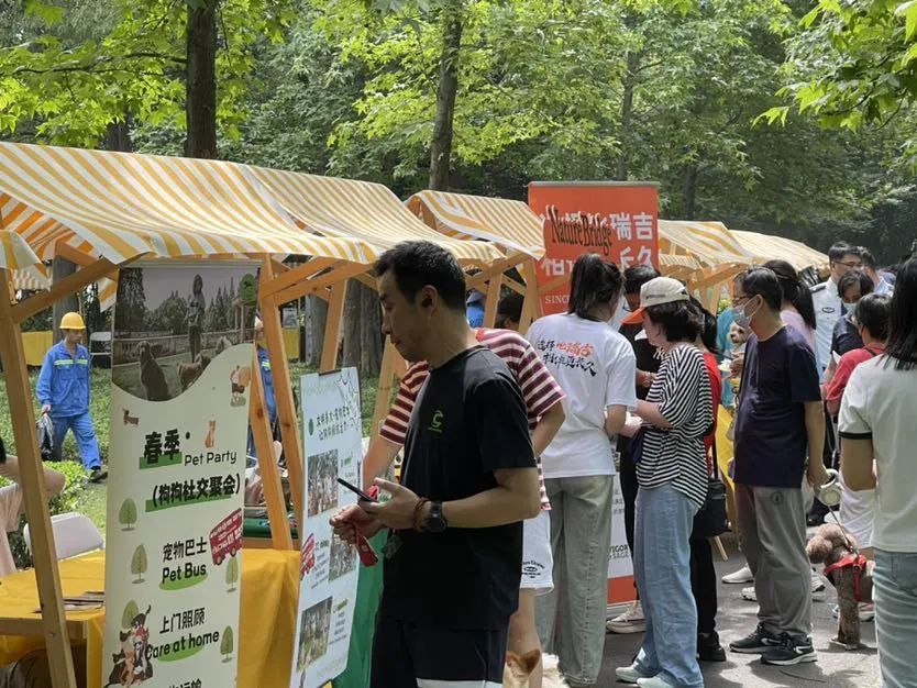 随后进行的嘉年华公益集市更是吸引了不少市民的参与,这里包括了动物义诊、宠物领养、文明养宠展示等共50个摊位,来自多个公益组织和养宠家庭的爱宠们齐聚一堂,享受宠界名医大会诊,演绎一幅人与宠物和谐共生的美好场景。