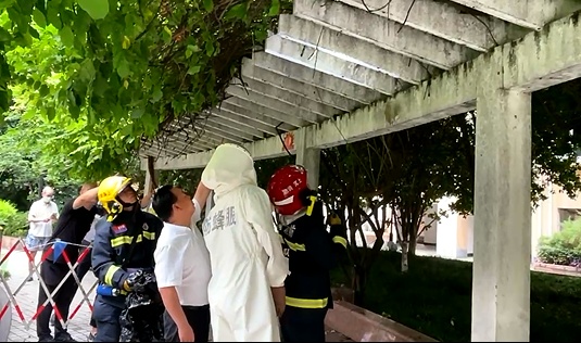 “好了,蜂巢已经没有了,外出的蜜蜂回来后,很有可能再次在小区里做巢,如果大家发现了,请再联系我们。”6月20日17:30,上海市消防总队黄浦支队北京站的消防员身穿防蜂服,来到南京东路街道小花园居民区中福城一期,帮助居民们清理了长廊里出现的一个蜂巢。居民们又可以放心地在长廊下休息、散步了。