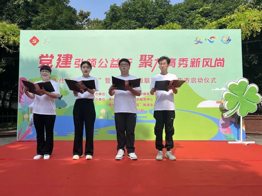 6月21日上午,“党建引领公益行 聚力育秀新风尚”南桥镇育秀社区庆“七一”暨四叶草公益联盟、公益集市启动仪式在育秀园举行。当天开市的育秀社区“四叶草”公益联盟,旨在鼓励和吸纳多元主体参与到基层社会治理中,在“送法、送医、送学、送政策、送温暖”等服务中凝聚更多自治共治合力,实现共建共享、优势互补,助力辖区居民过上“南桥暖日子”。
