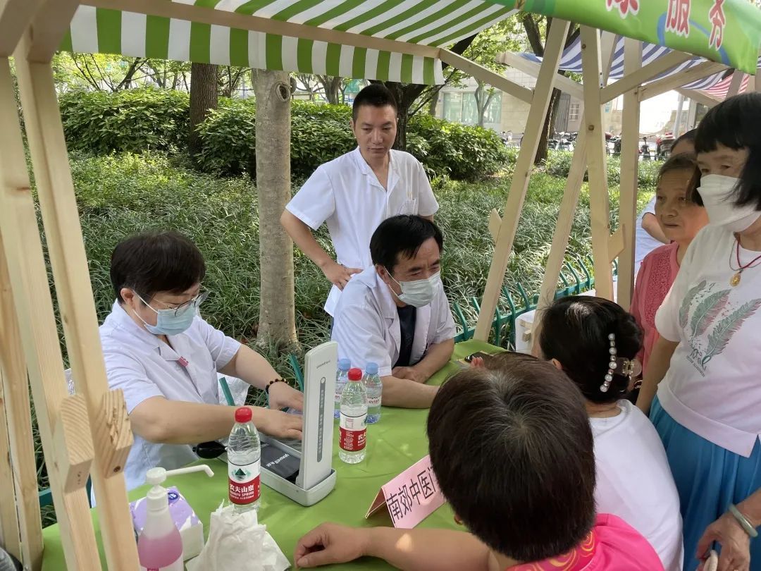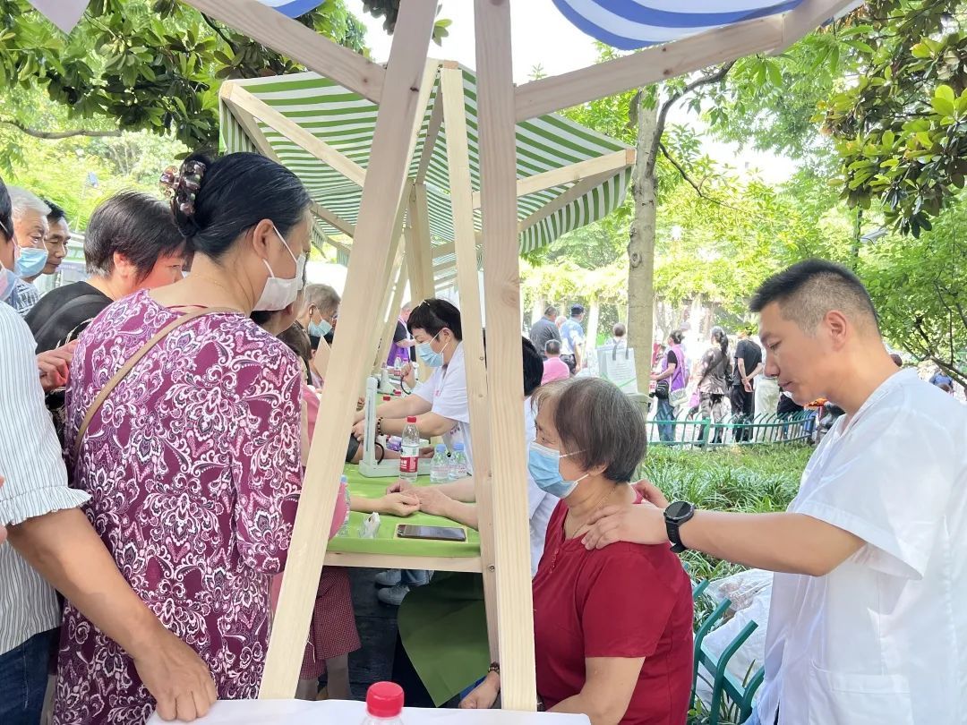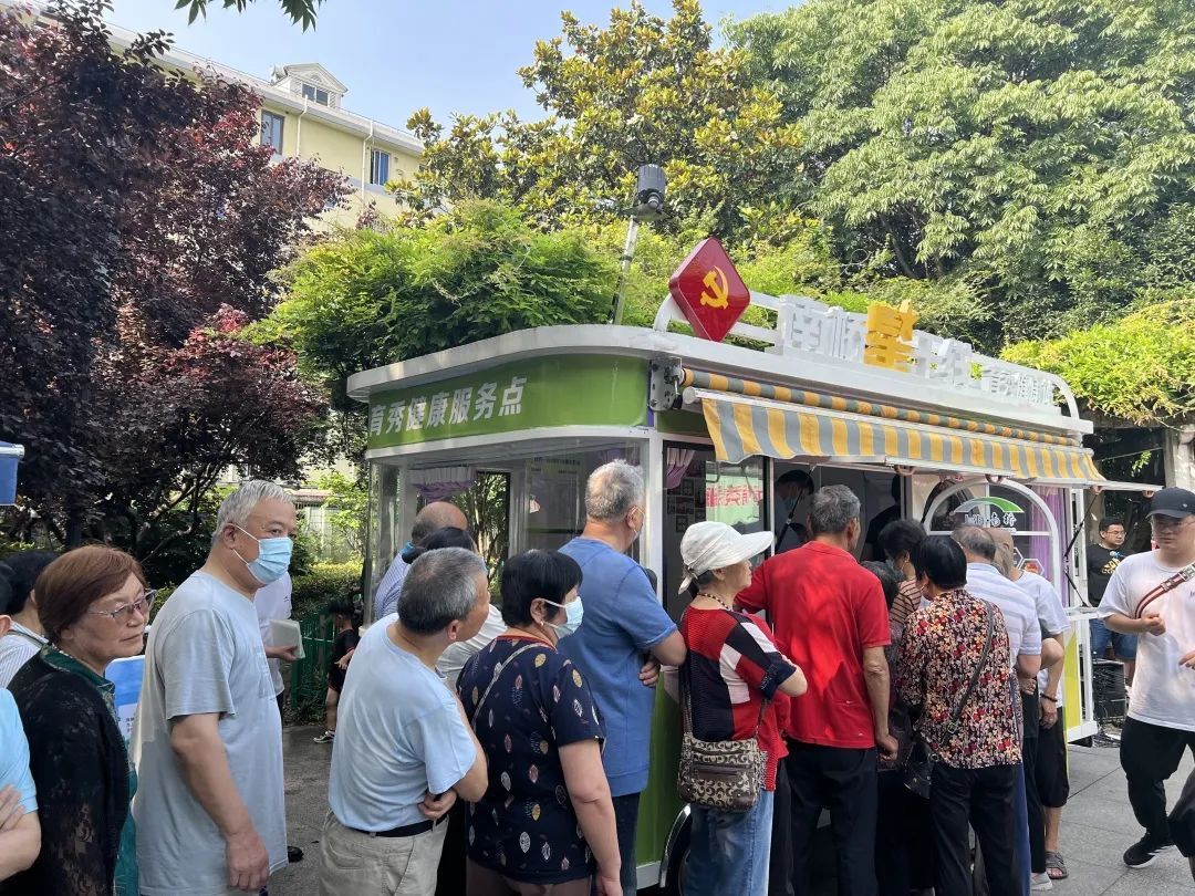 现场的南桥“星”干线之育秀健康站前,居民有序排着长队,等待测量血糖、血压并进行健康咨询。
