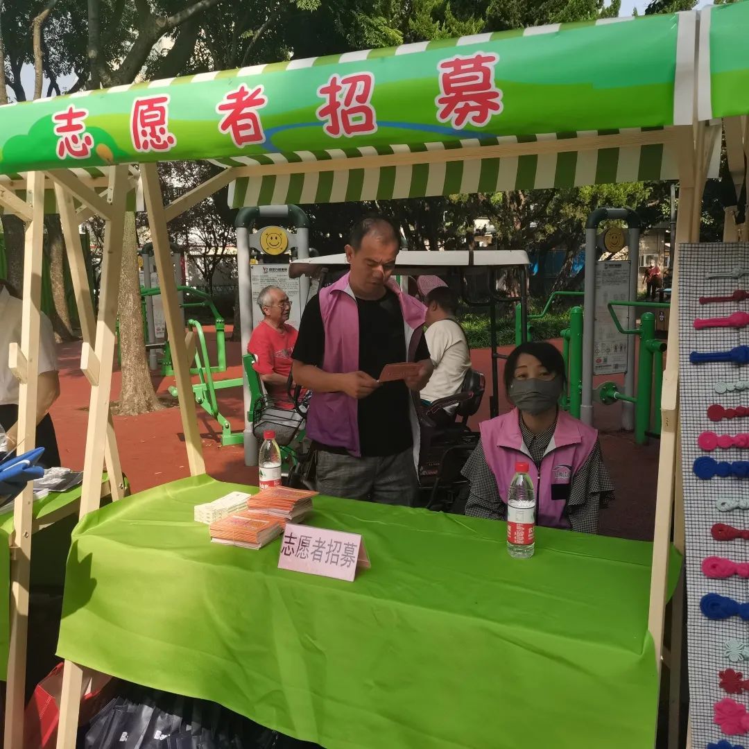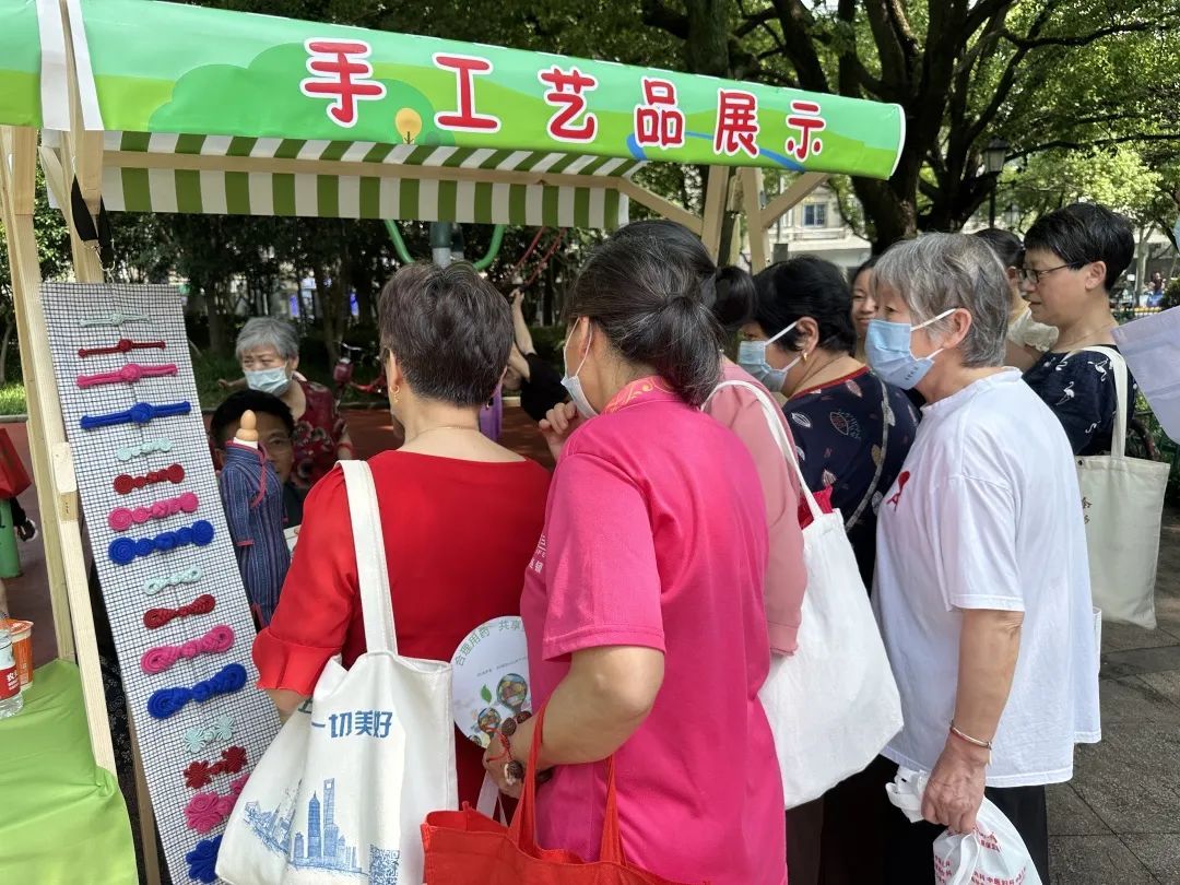 爱心集市上也是精彩纷呈,有健康服务、法治宣传、政策宣传、志愿者招募、手工艺品展示等。