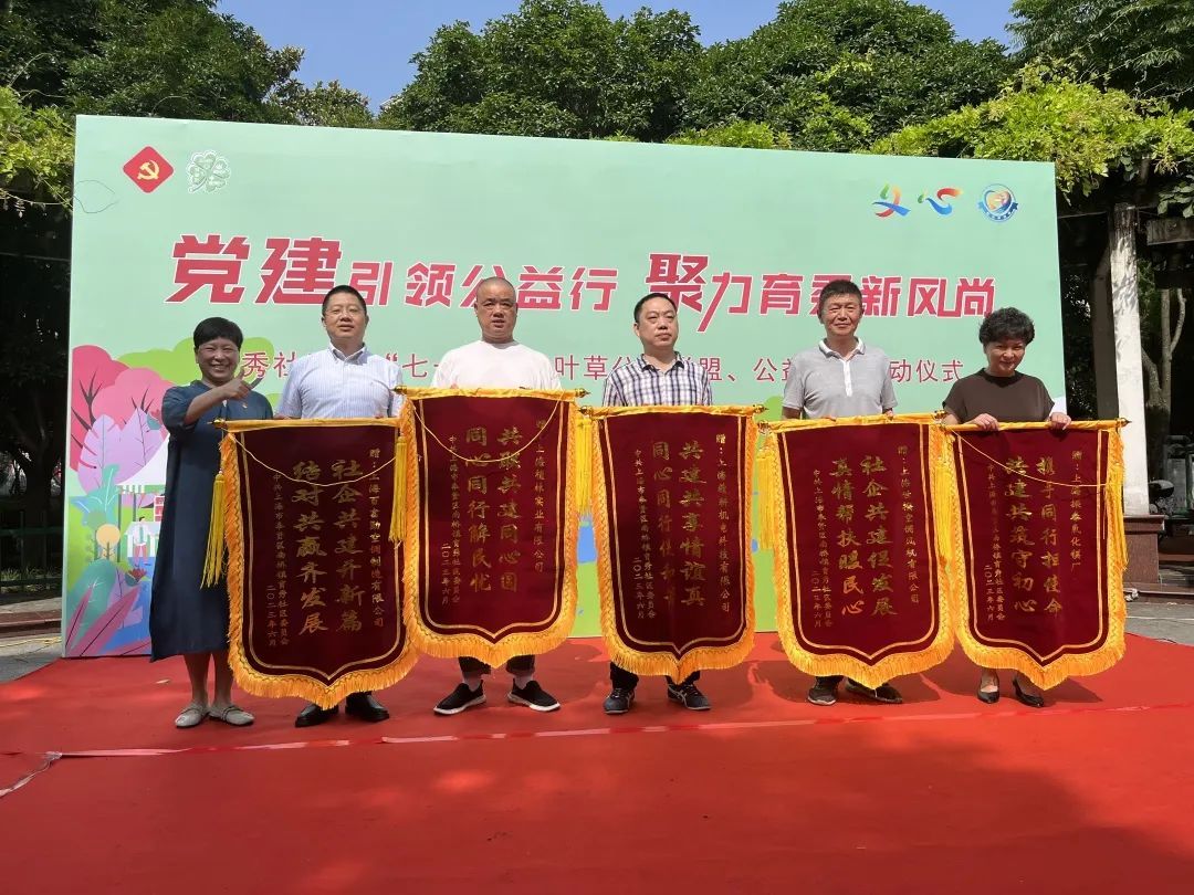 育秀社区党委向“百企联百区”制造业二组的爱心企业赠送锦旗,感谢企业对社区建设的真诚助力和对社区居民的暖心关爱。