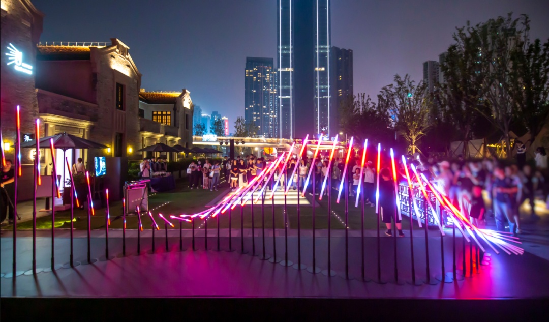 夜生活期间,声光艺术装置《THE INFINITY FLOW》将于每天18:00—22:00,每逢整点及半点开启表演,为夏日水岸夜生活注入更多活力体验,消费者可以身临其境感受。