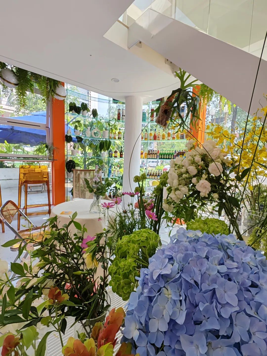 庭院内摆放了露营专用的桌椅,微风习习,坐在舒适的椅子上,让人格外放松。而店内,仿佛把我们带入了另一个世外桃源,五颜六色的鲜花昂扬着旺盛的生命力,让人心生喜悦。