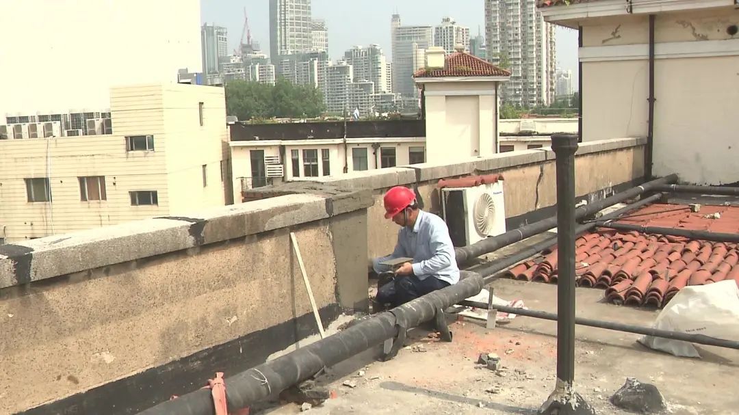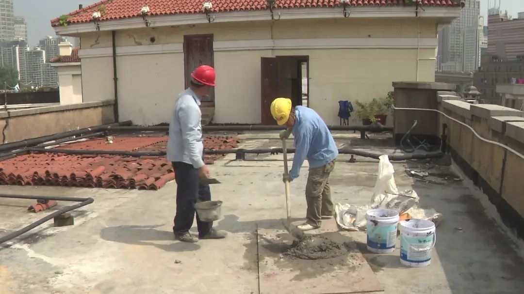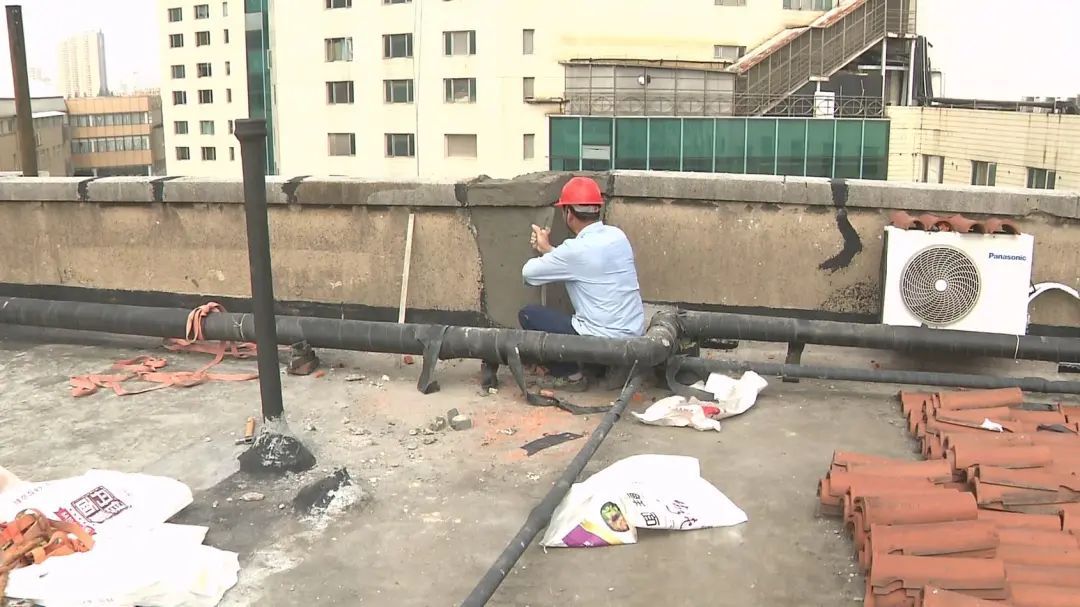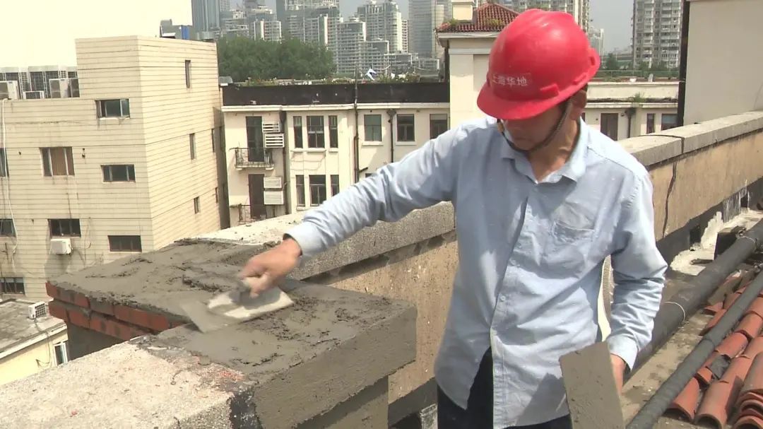 6月21日上午9点,记者在永业大楼屋顶看到,抢修人员正在对破损的墙面进行最后的应急抢修,破损处基本被填补。上海永善建筑保养工程有限公司副总经理倪晓华告诉记者,这次雷击对楼顶女儿墙有所破坏,应急抢修队第一时间赶到现场,对女儿墙进行危险部位拆除,然后按照“历保”的要求快速地修复。这段女儿墙底座是用砖头砌起来的,上面按照过去的要求用木板夹起来,然后将混凝土浇进去,最后再做白颜色的磨石子的表面处理。