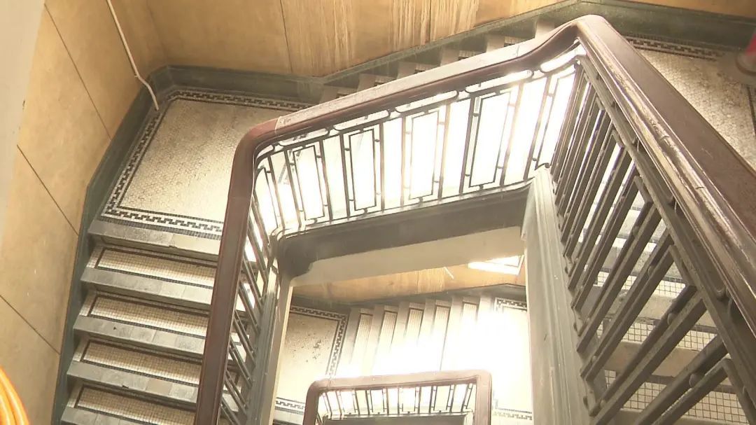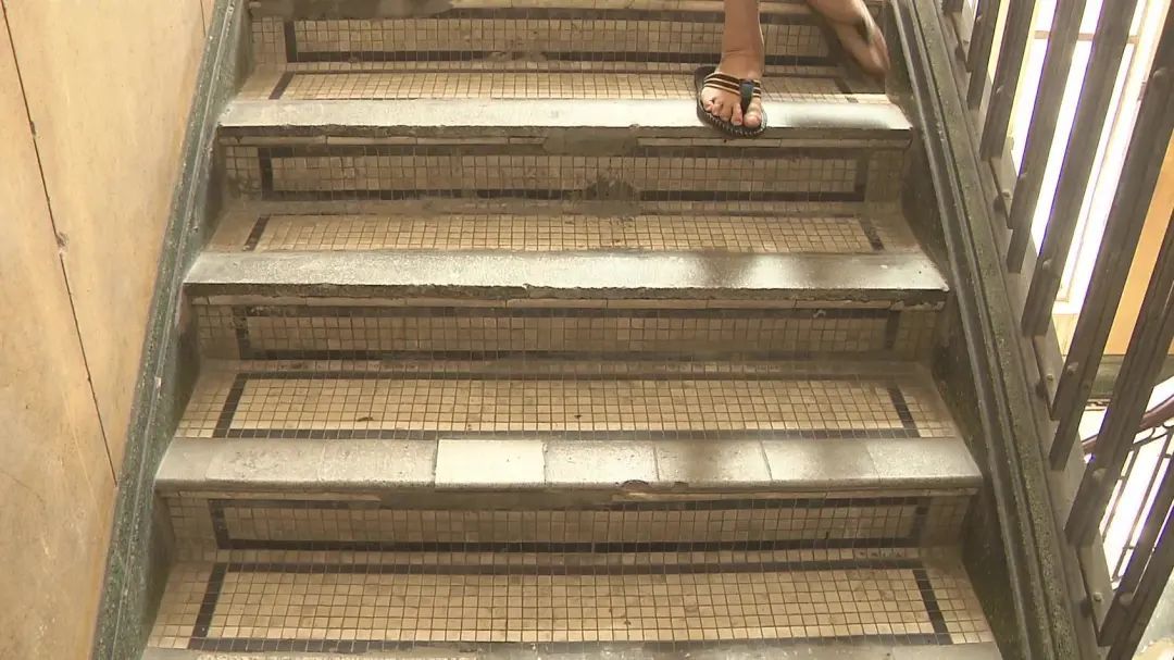记者在永业大楼看到,大楼楼顶被雷击的这一侧,底下弄堂狭小,平时停满了各种车辆。据介绍,不幸中的万幸是,当晚掉下来的石块没有伤到人和车辆。这幢有着九十年房龄的老大楼,很多地方都已经呈现出破旧状态,屋顶墙面也有多处应急修补的痕迹。尽管区相关单位经常对大楼进行维修,但里面楼梯和屋顶处老化严重。