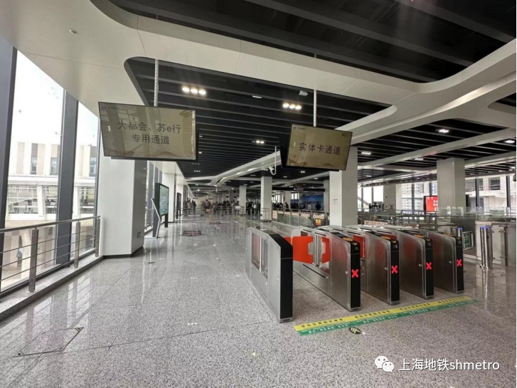 特别提醒,使用“Metro大都会”App或“苏e行”App以外其他乘车方式的乘客,换乘时务必通过“实体卡通道”,完成刷卡出站后,从站外换乘通道再重新进站。切勿跟随人流从大都会、苏e行专用通道“无感换乘”,以免影响后续出站票款结算。