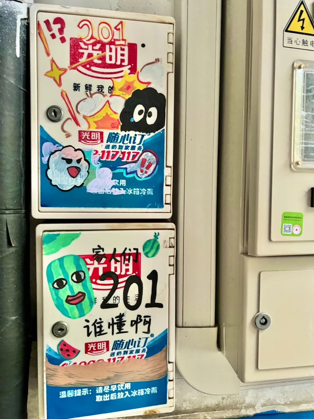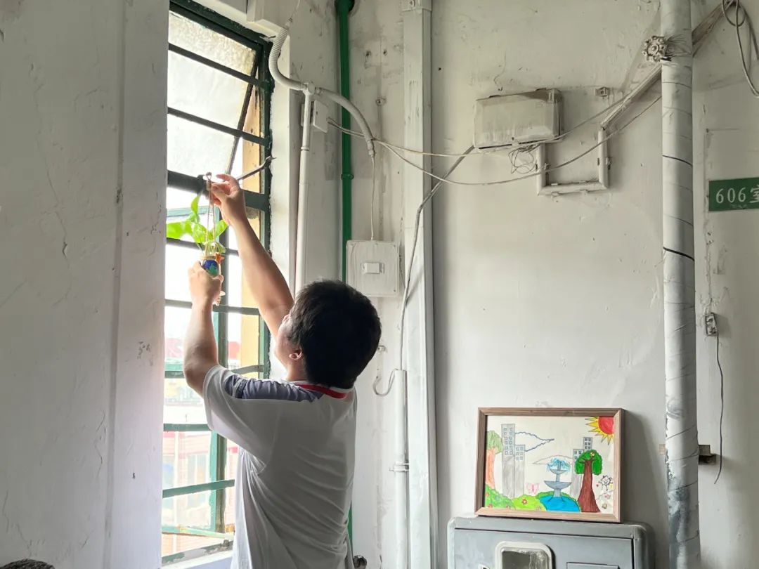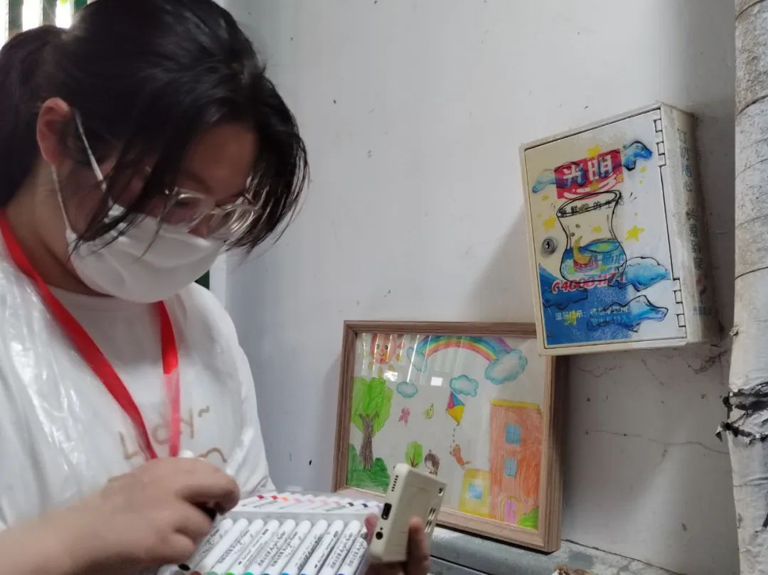 平平无奇的水表箱被根据楼层刷上不同的颜色,白色的牛奶箱被打扮成可爱的库洛米,窗户上挂起了装饰好的水培绿萝,让原本单调的楼道瞬间变得生动起来,也吸引了不少社区居民的注意。他们纷纷走出家门,驻足观赏,热情地邀请上理附中学生去家里喝水休息,表达感谢。