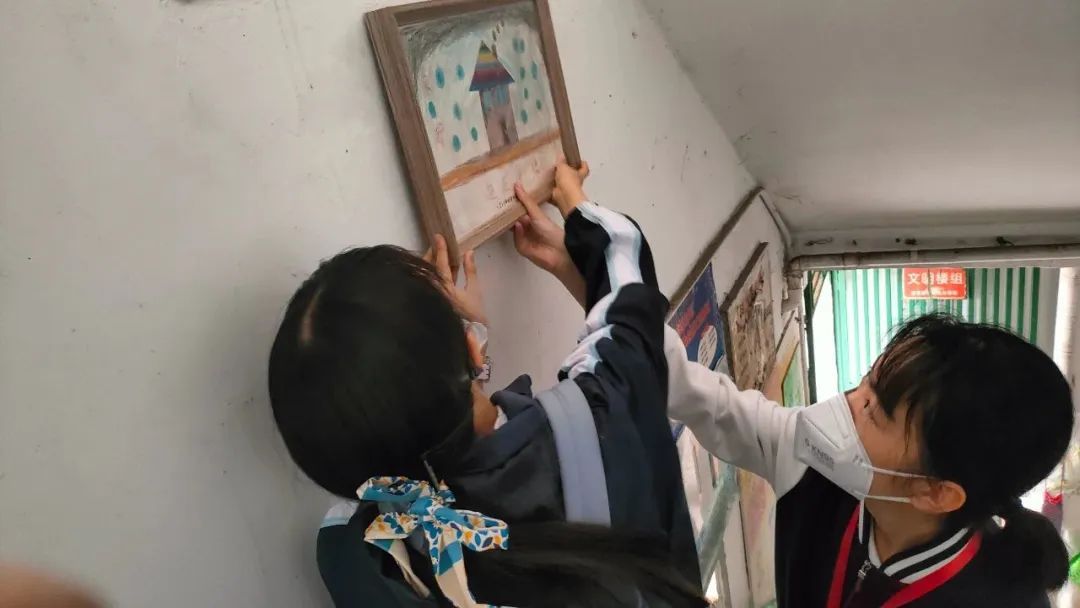 在大家的不懈努力下,楼道焕然一新,变得美丽、干净又整洁。学生们在楼道里挂上了共同创作的“我心目中的美丽家园”彩铅画,为城市文明建设贡献自己的力量。
