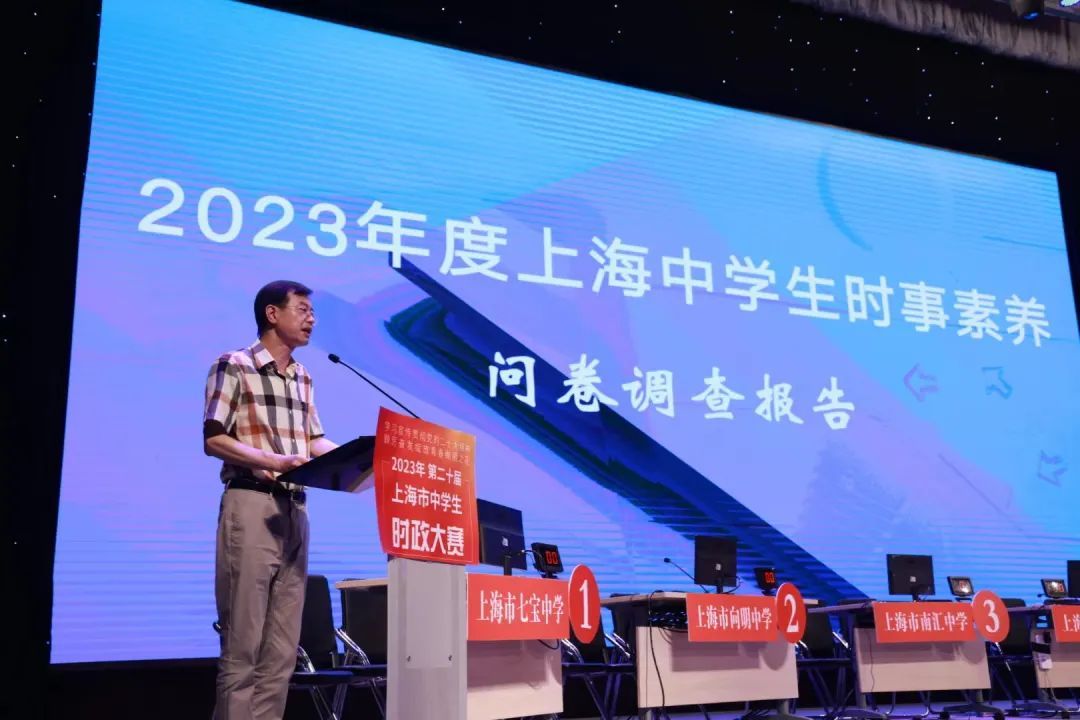 今年是时政大赛创办的第二十个年头。活动现场,承办单位《上海中学生报》发布了“2023年度上海中学生时事素养问卷调查报告”。