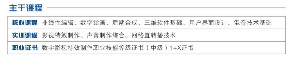 本专业主要培养能够从事视听媒体内容制作与转换、音视频直转播技术、视觉媒体音频混录技术、游戏音频制作等工作的知识型、发展型高素质技术技能人才。