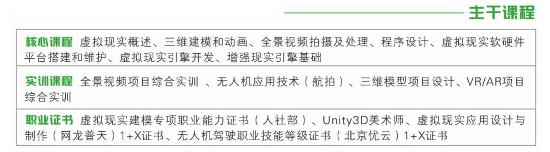 本专业主要培养能够称为从事项目设计、项目交互功能开发、模型和动画制作、全景拍摄和处理等工作的高素质技术技能人才。