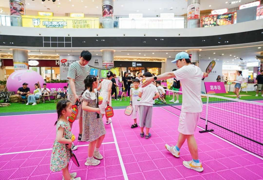 昨天下午,记者在商场中庭看到,新搭建的专业匹克球运动场颇为热闹,颠球、挥拍、发球……在教练的指导下,市民正投入地学习基础动作。