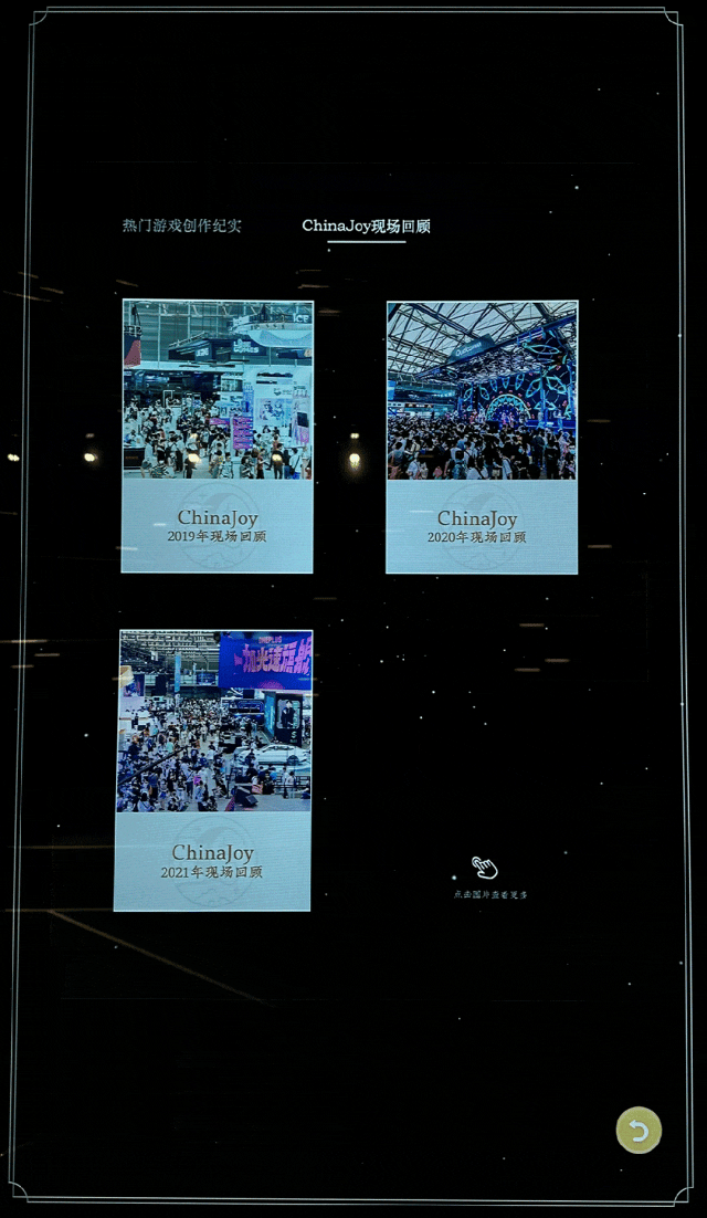 游戏出版是数字出版的重要组成部分。馆内一座互动屏,展示热门网络游戏创作纪实与ChinaJoy(中国国际数码互动娱乐展览会)现场回顾影片。全球数字娱乐领域最具知名度与影响力的年度盛会之一ChinaJoy始于2004年,从第二届起宣布永久落户上海,于每年盛夏之时举办,现今已成为代表“上海文化”的名片之一。2020年起,ChinaJoy增设了线上云展、VR游戏、云游戏、区块链游戏、AI、5G等前沿科技和高品质内容产品。