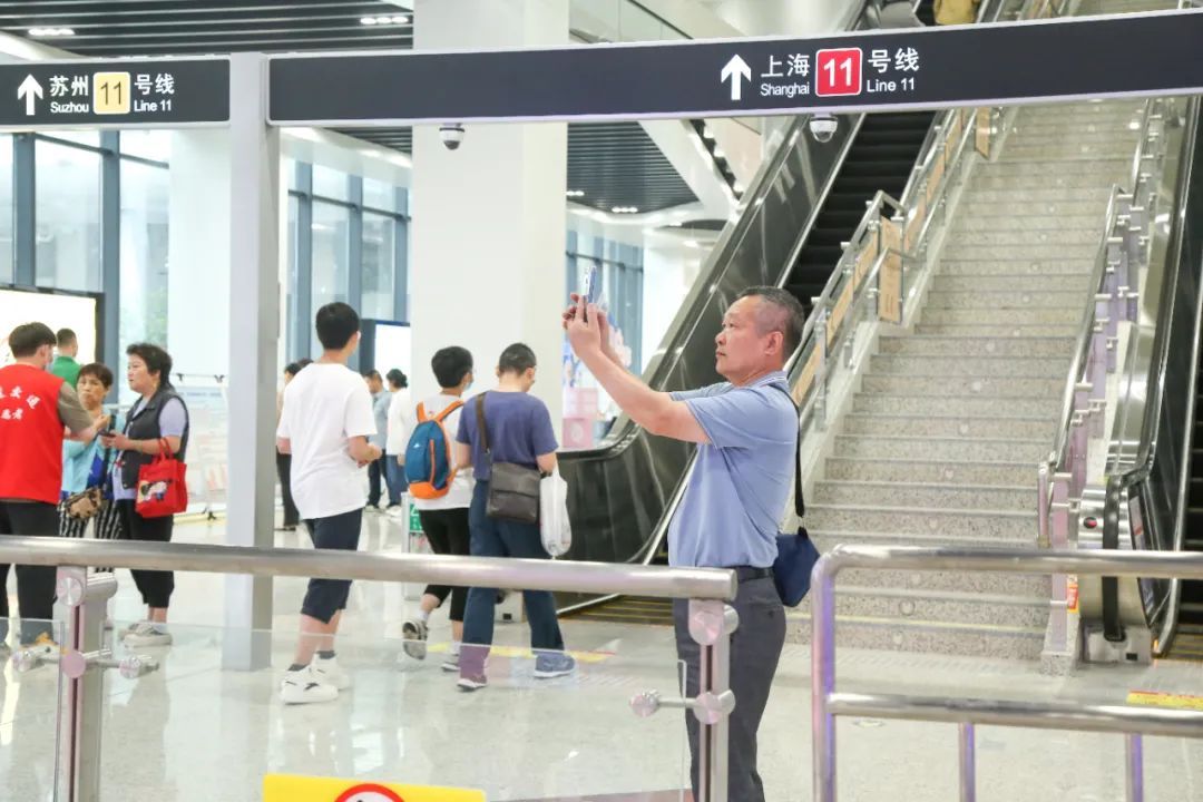 十一点整,大家迫不及待走上换乘连廊,或是拍照打卡,或是直奔进站口乘车。“退休以后我和老伴打算从上海搬到昆山养老,正好赶上地铁开通,先来看看路线怎么走,以后回上海看孙子孙女就很方便了。”上海市民郎先生早上八点就从家中出发,准备乘坐地铁去一趟昆山的新房子。