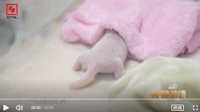 所以熊猫宝宝在妈妈肚子里的发育时间大约只有两个月,因此胎儿出生时非常小,看着就像一只小老鼠。“所以,它生下来是早产儿。”