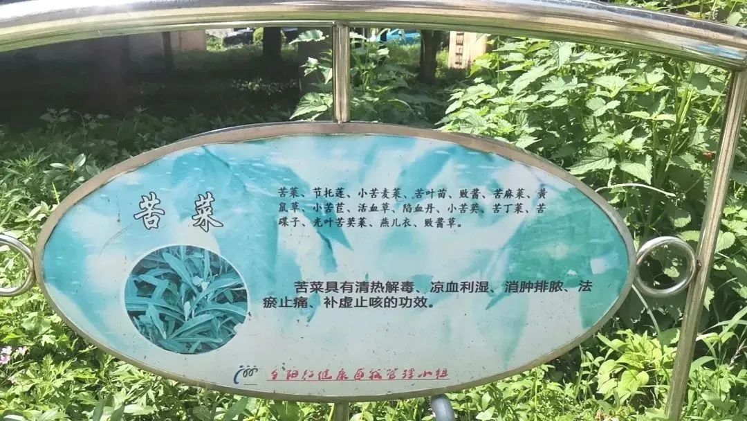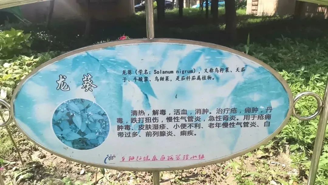 每个地块上都竖着一块牌子,犹如一个个说明书,上面写着中草药的别名、功效、性味等,便于居民对中草药知识的学习和掌握。各种常见的中草药沐浴着阳光,生长得很旺盛。