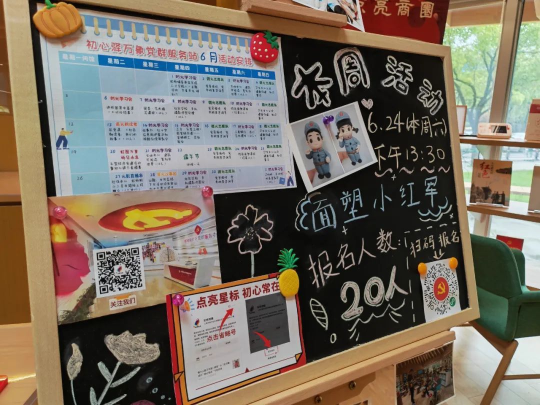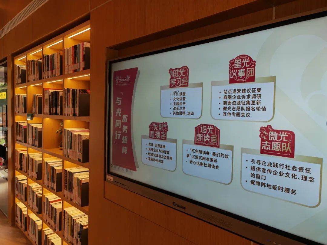 目前,服务站依托时光学习会、追光朗读者,开展“有声有色”的系列党课,如声音党课、云端党课、话剧党课、行走的党课等各种形式新颖的理论学习活动,打造红色商圈。