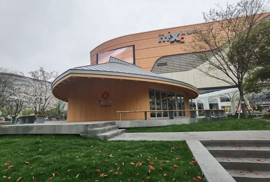 为了让党群服务阵地复合更多的功能,虹桥镇将党群服务站与城市书房融合打造,通过简约时尚的建筑风格、明亮通透的光线布置、温暖亲人的木质情调,打造更有时尚潮、烟火气、文化韵、国际范商圈服务阵地。