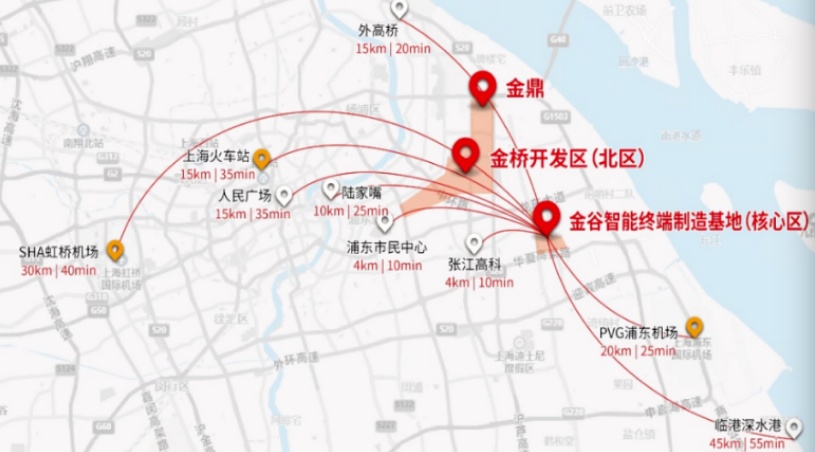 项目坐落于金桥开发区金谷智能装备产业基地,毗邻地铁2号线(华夏东路站、创新中路站)、外环线及龙东高架、华夏高架;园区步行900米可到达2号线华夏东路站,同时配有免费短驳交通,可直达地铁2号线创新中路站、金桥开发区及银行卡园,提供定班专线(金桥北区和张江园区)及短驳公交;周边紧邻川沙新镇、唐镇,可辐射到商业、生活、教育、医疗配套设施。