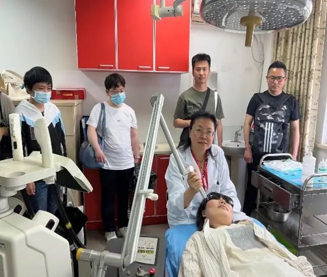 会后,黄欣教授团队带领各位学员参观了同济医院毛发医学中心和皮肤科美容室,并进行了临床操作演示。