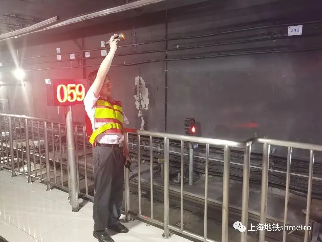 ↑ 车站工作人员显示“发车手信号”