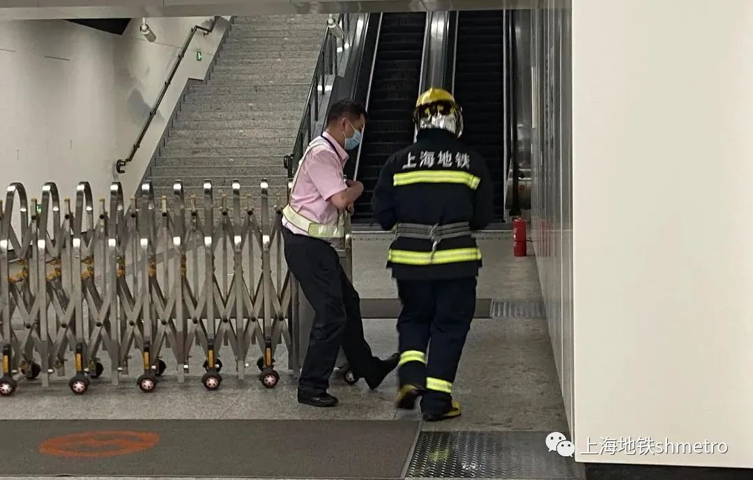 本次演练模拟13号线陈春路站3号口站厅至站外自动扶梯机仓盖板下方有异味,同时车站站台下行滑动门左侧玻璃碎裂,影响滑动门正常开关的故障场景。