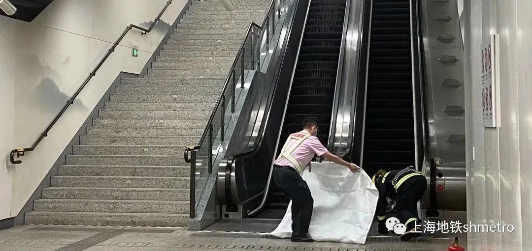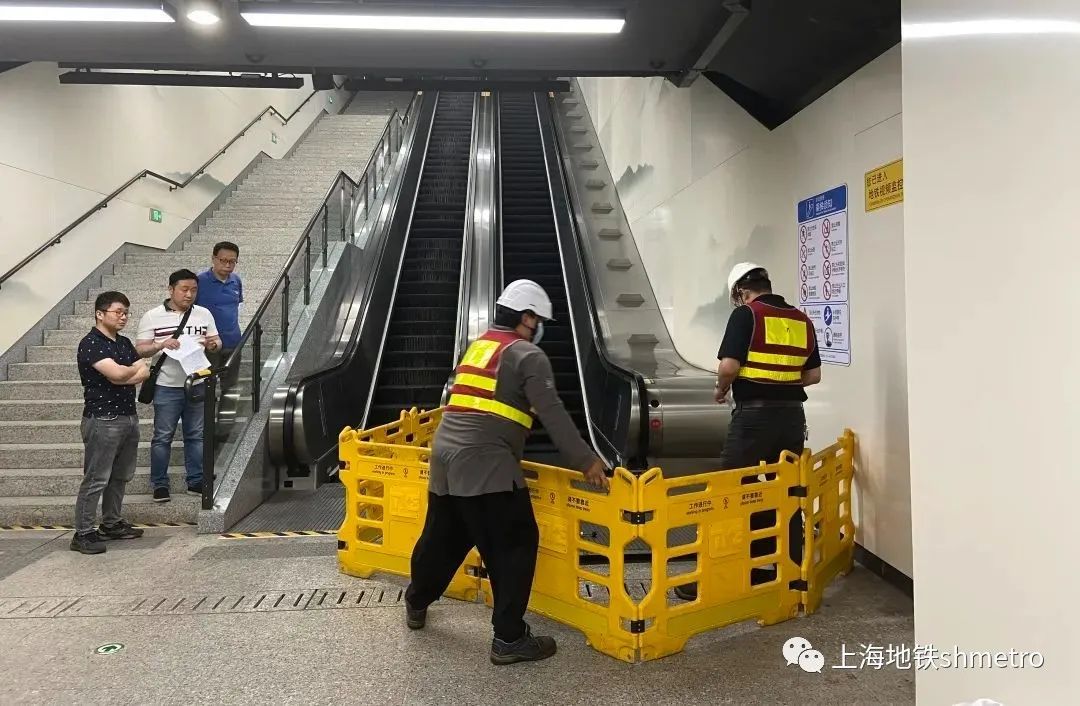 ↑ 设备维修人员进行自动扶梯抢修作业