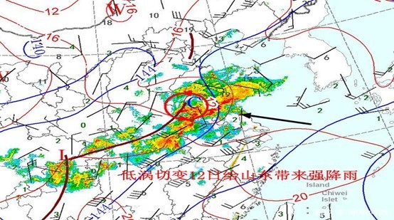 从字义上看,涡是 “水”与“呙”联合起来,通常表示水的锅形旋流,也指水流旋转形成中间低洼的地方。低涡(wō)是指出现于大气中低层的水平和垂直范围都较小的低压涡旋,范围一般只有几百千米。对山东来说,低涡切变线是经常影响降水的重要天气系统之一。由于副高加强,其北侧的切变线北抬,切变线上往往伴随着低涡系统东移,对我省中南部和半岛影响较大,水汽条件好的话,可造成很强的降水,如2020年6月12日我省鲁南地区明显降水和2022年7月19-20日济南强降水天气过程就是受切变线影响所致。