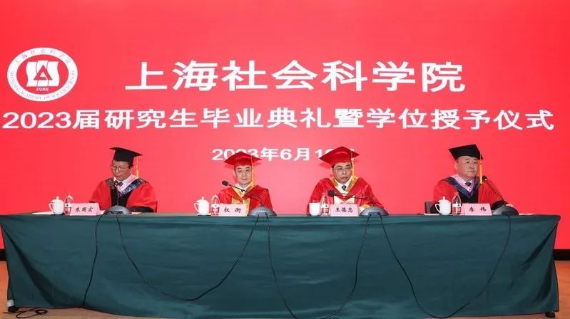 6月16日上午,上海社会科学院2023届研究生毕业典礼暨学位授予仪式在上海社科国际创新基地五楼多功能厅隆重举行。上海社科院党委书记权衡研究员、院长王德忠研究员、副院长朱国宏研究员出席。我院各研究所领导、导师代表、研究生院职工、校友代表和2023届全体毕业生及家属共300余人济济一堂,共襄盛举。本次典礼由研究生院院长李伟研究员主持。