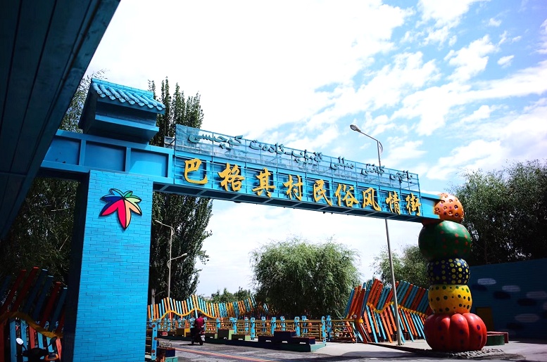 依干其镇巴格其村民俗风情街是一幅斑斓多姿、温馨美妙的田园画卷。位于阿克苏市南侧,距离阿克苏市区4公里,毗邻多浪河二期和阿克苏国家湿地公园、森林公园。千亩果园环绕四周,是一家以七彩色调为主外观的乡村旅游度假区,也是远近闻名的网红打卡地。