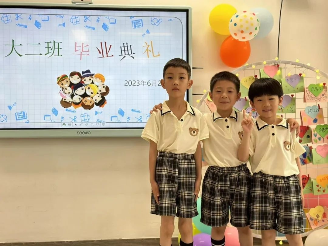 你们已经成长为心中有爱,眼中有光的小小少年。希望你们在新的旅程上,勇敢自信,放飞自己的梦想。