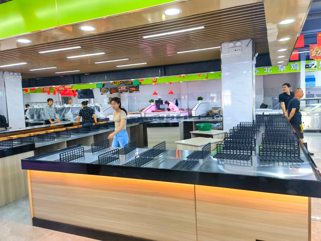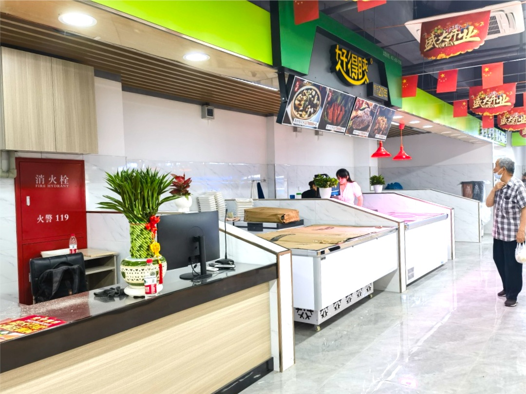 同时,市集采用超市化理念,根据经营品种划分经营区域,并遵循干湿分离原则。场内配备现代化的设施设备:消防喷淋、电子收银台、电子秤、冷冻柜、阶梯式货架、安全监控等设施一应俱全,营造明亮、整洁的商场化购物环境。